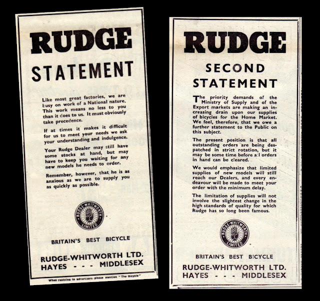 As with so much, the outbreak of the Second World War abruptly ended a Golden Era for British cycle sport and racing cycles. As events proved, the War was especially cruel for Rudge, not only curtailing their just-introduced lightweight range and co-opting their new factory, but, before it was over, ending their independence. For 75 years, the name Rudge-Whitworth had figured prominently in British cycle design, innovation and prowess in cycle sport. Whilst it carried on for another quarter of a century as a brand and a badge, the years just before the War presented a final heyday.